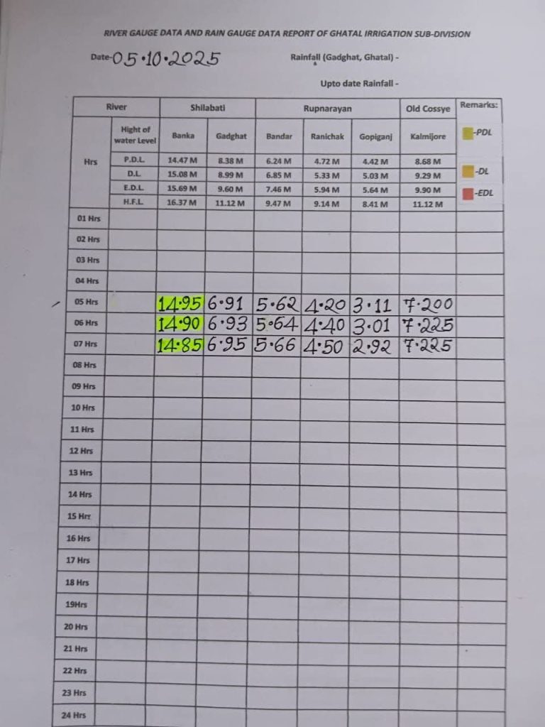 घाटाल , ५ अक्तूबर । पश्चिम मेदिनीपुर के घाटाल में लगातार बारिश के प्रभाव...