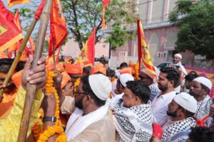 शोभायात्रा के दौरान कडरू स्थित हज हाउस के पास सांप्रदायिक सौहार्द्र का अद्भुत दृश्य देखने को मिला। यहां मुस्लिम समुदाय के लोगों ने शोभायात्रा में शामिल श्रद्धालुओं का जोरदार स्वागत किया। उन्होंने श्रद्धालुओं को माला पहनाकर, चुनरी और अंगवस्त्र भेंट कर तथा अल्पाहार की व्यवस्था कर आपसी भाईचारे और एकता का सशक्त संदेश दिया गया।