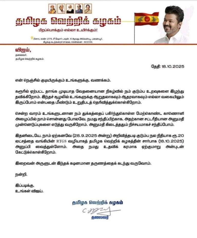 चेन्नई, 19 अक्टूबर। अभिनेता से नेता बने विजय की पार्टी तमिलगा वेत्री कझगम (टीवीके)...