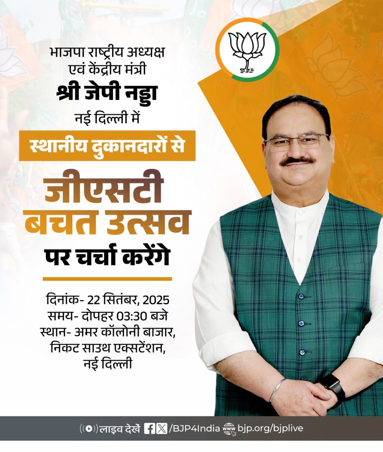 नई दिल्ली, 22 सितंबर। भारतीय जनता पार्टी (भाजपा) के राष्ट्रीय अध्यक्ष और केंद्रीयमंत्री जेपी...